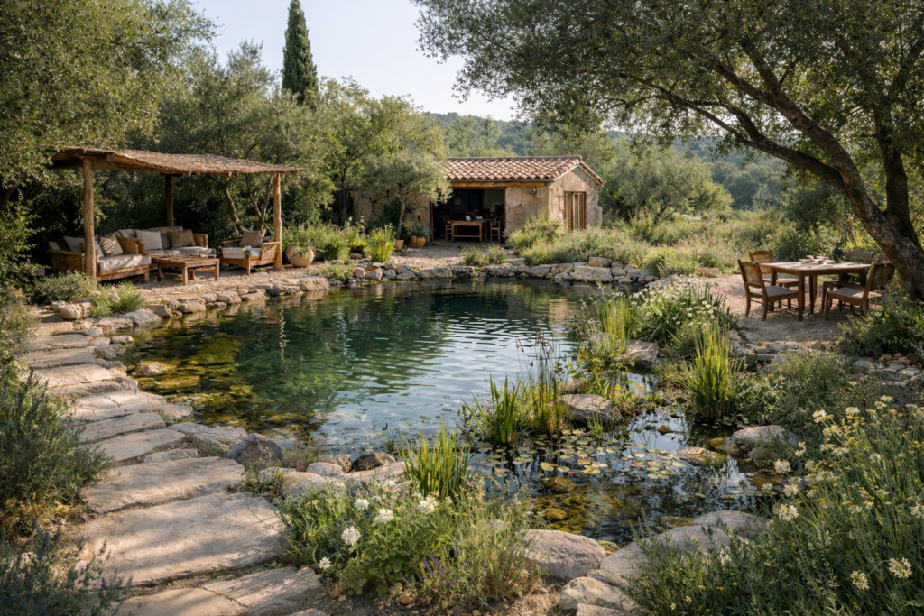 Dans cette approche, l’eau s’inscrit dans une logique circulaire et territoriale. Elle est stockée, redistribuée, valorisée pour le potager, réintégrée au cycle du site sans rupture ni gaspillage.